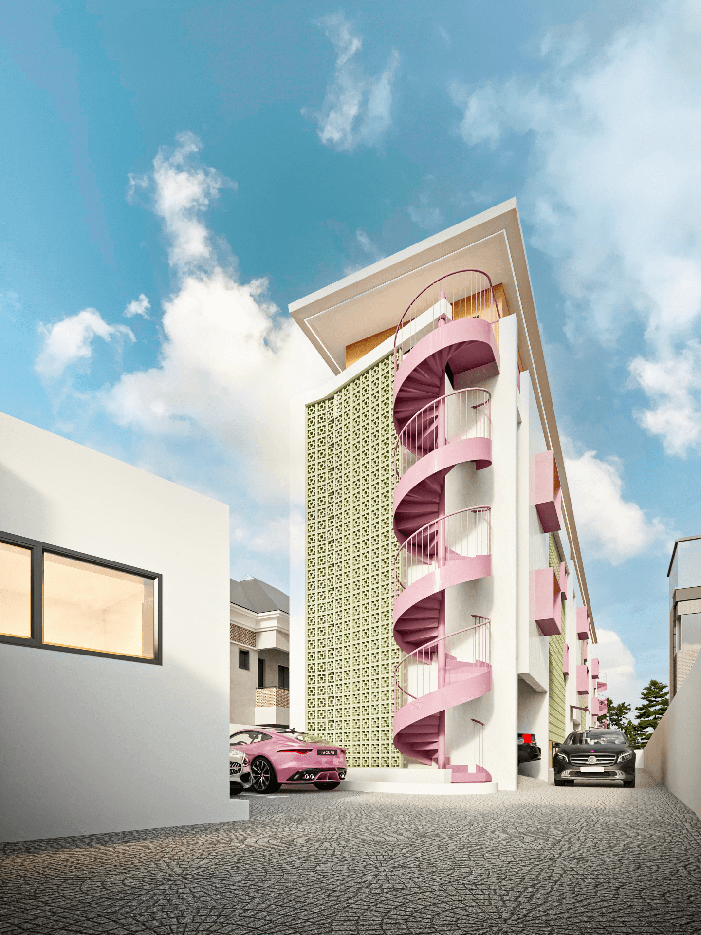 Situated in Ikeja GRA, Lagos, this project is on a site considered unprofitable due to its total land area and shape. CCW proposed a residential development comprising three units of 3-bedroom single-family dwelling across two upper floors, and two units of 2-bedroom